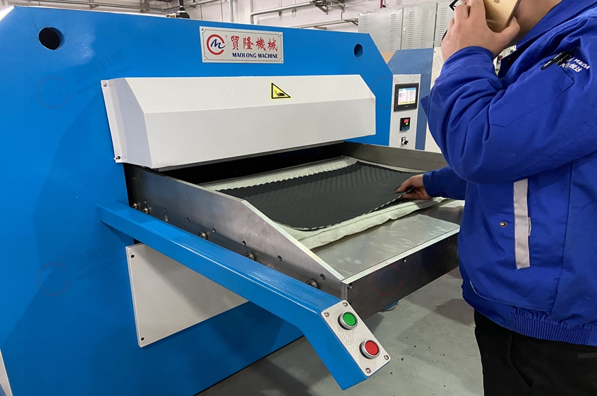 4、压力最大220T,加压无极可调,保压时间最大可达五分钟,人机界面控制,设备采用,平面度可达±5丝,以保障压花的花纹深度一致。