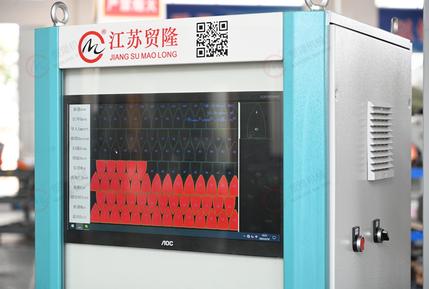 2.裁断头通过图形色别360度旋转自动排位,下压时在接触裁刀10mm前自动缓速,使裁断图像通过成像后CAD对叙没有尺寸误差.